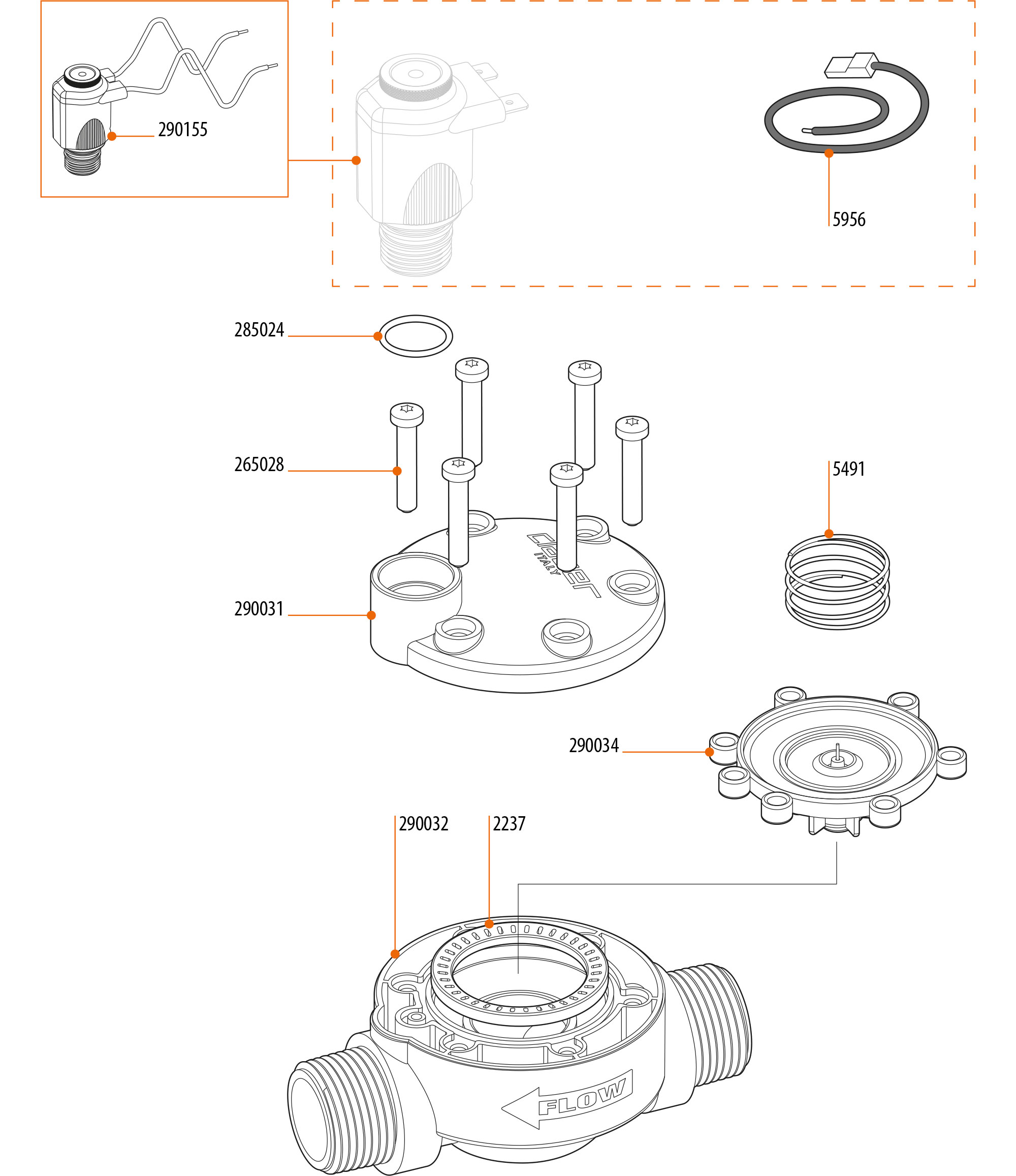 membrana con piattello, spillo e guarnizione